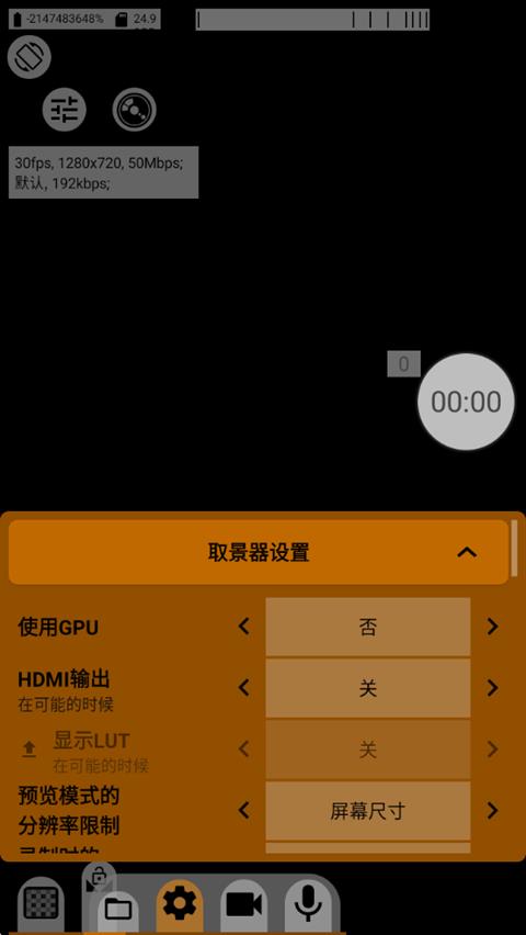 2、打开软件设置,我们先能看到取景器设置,取景器就是我们当前看到的画面,我们要调节的是分辨率限制,这里我建议使用屏幕分辨率即可,一般为1080p或1440p。预览时就是我们还没开始拍摄的时候;录制时就是我们开始拍摄的时候,我建议拍摄时降低一些预览分辨率,让手机发热轻一点。当然,使用这款软件需要调用大量软件性能,所以手机发热是在所难免的,所以各位同学在使用时发现手机发热时不要惊慌,发热是正常现象。
