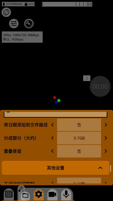 4、剩下的就是视频分割和屏幕亮度,我目前是使用无限制视频分割和总是最高屏幕亮度。视频分割是在视频达到一定大小后自动将已拍摄视频打包为一个视频文件,无限制就是将在录制结束后将整个视频打包为一个视频文件。无限制有好有坏,好处是大文件不用麻烦二次拼接,坏处是如果遇见突发情况,手机没电或者是手机过热系统强制退出软件等情况,视频文件有丢失的风险。分割的好处是手机会隔一段时间自动保存,防止文件丢失,大家可以根据自己的需要自行设置。