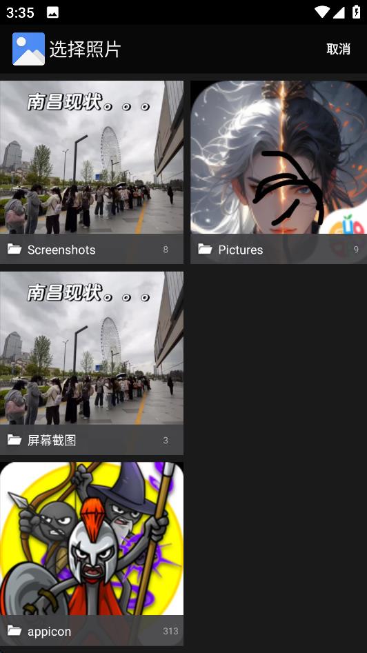 5、腾讯水印相机并不知是在拍照的时候加上水印,它对用户手机相册里的图片同样可以进行水印添加。用户只需要点击界面左下方的相册按钮进入,可以对图库及文档里进行图片选择。