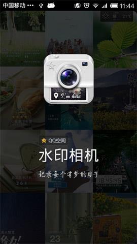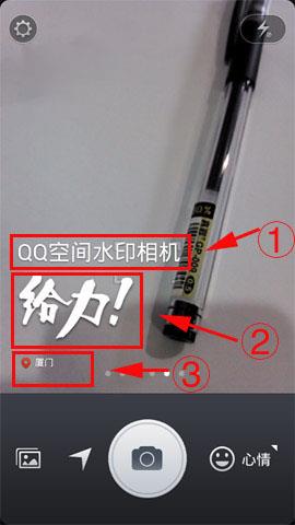 2、就跟手机系统自带的相机界面差不多。多的只是水印这部分,用户可以用手左右滑动手机荧幕,对水印进行选择,腾讯水印相机给用户提供了心情、地点、时间、美食、天气五大分类的水印。