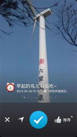 3、笔者随意选择了一款水印给大家做了词演示:只要用户想修改哪一块的文字,只需要轻轻点击该处即可进入编辑界面,笔者下图水印的文字、心情、地理位置进行了编辑,大家可以参考下。