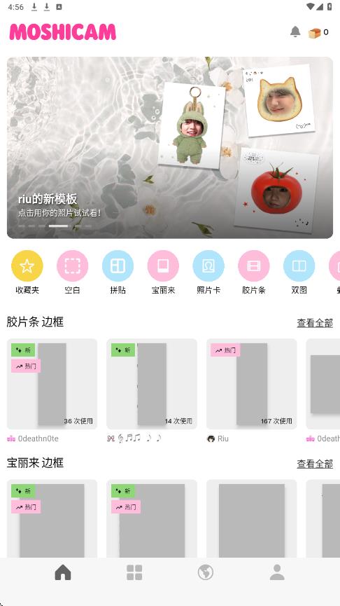 2.第二个板块可以查看贴纸、边框模板,以及已购的模板