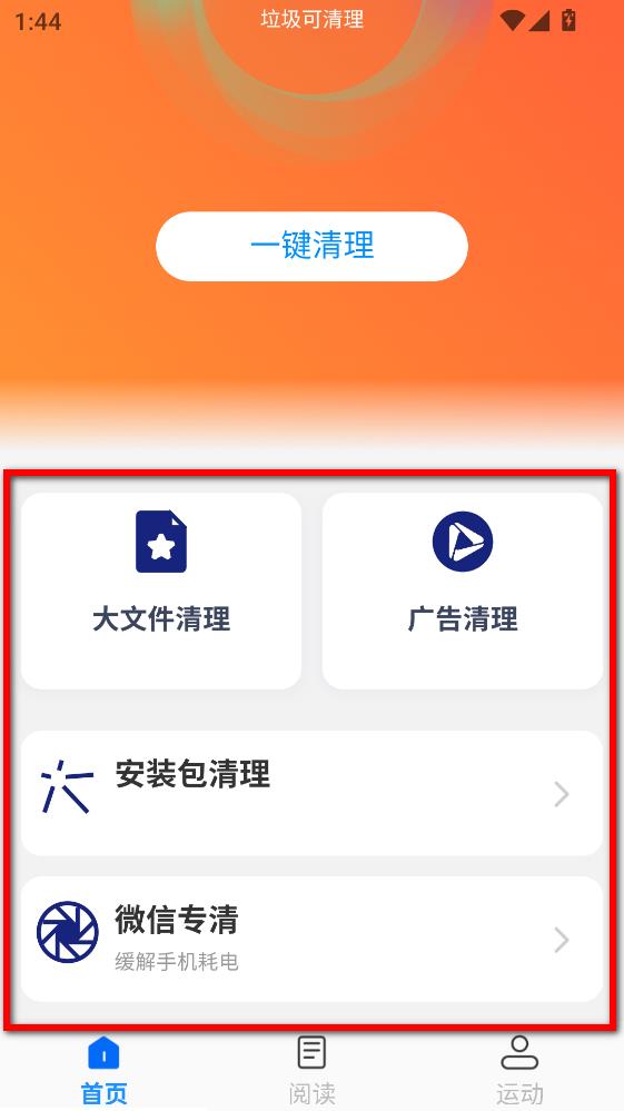 2.在首页就可以进行一键清理。