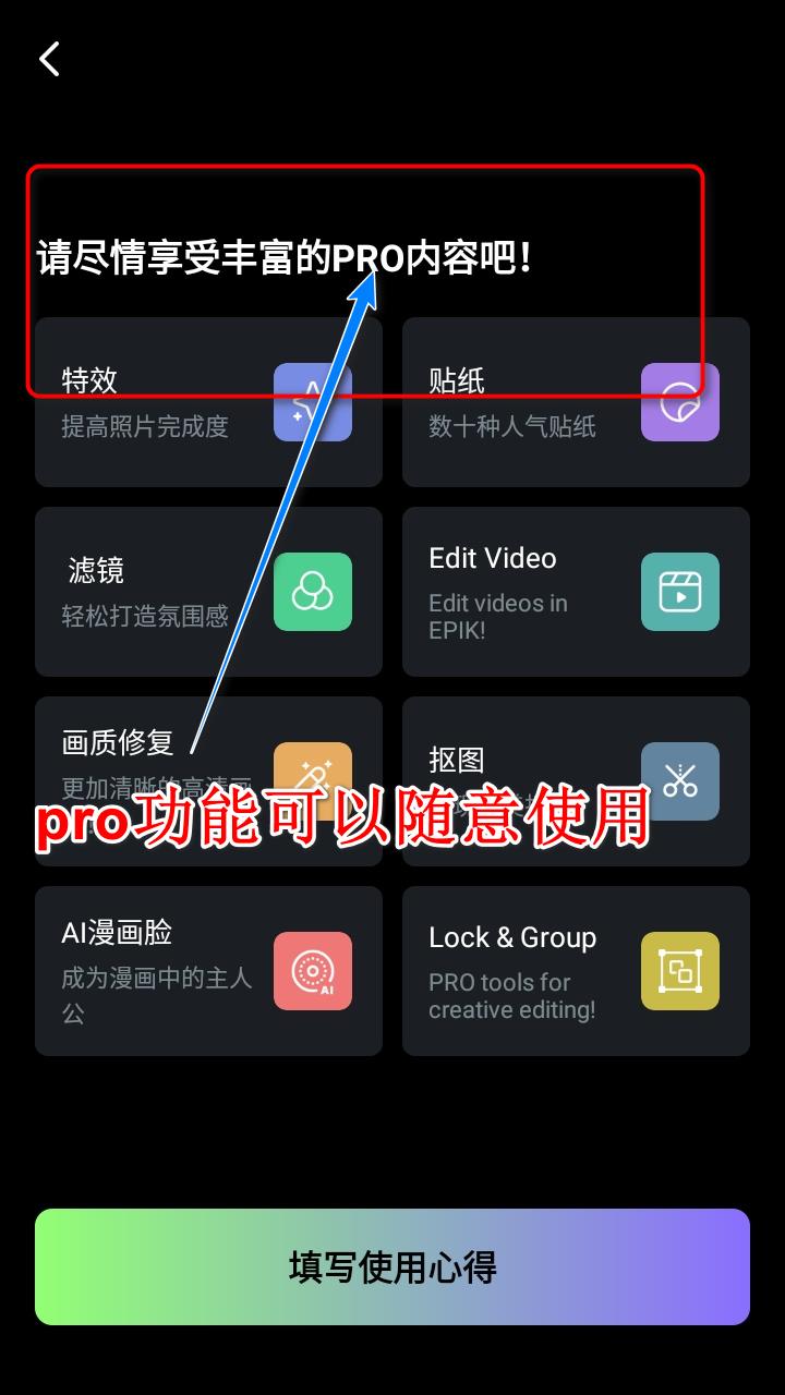 3.点击右上角的pro可以查看高级版功能,在这里我们就可以看到功能解锁了。