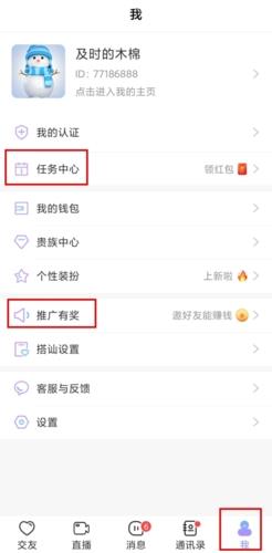 1、在我页面中可以通过任务中心和推广有奖来赚钱的;