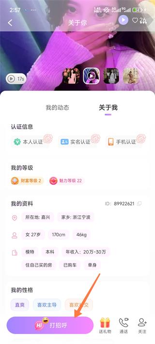 3、点击打招呼