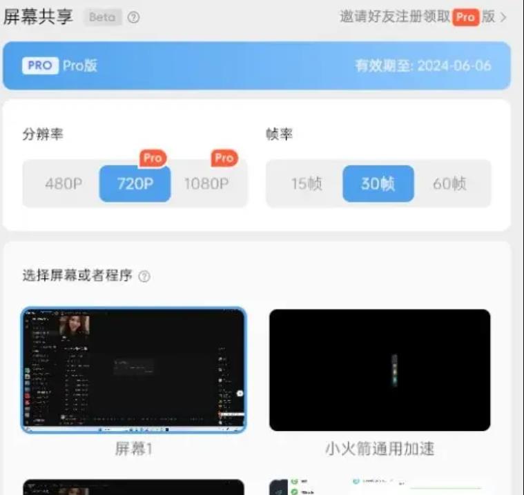 4.调节合适的“屏幕共享”数值,并点击想共享的页面(特定选择想共享的界面,会避免回声哦)