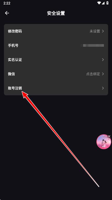4.点击账号注销。