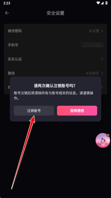 5.点击注销账号。