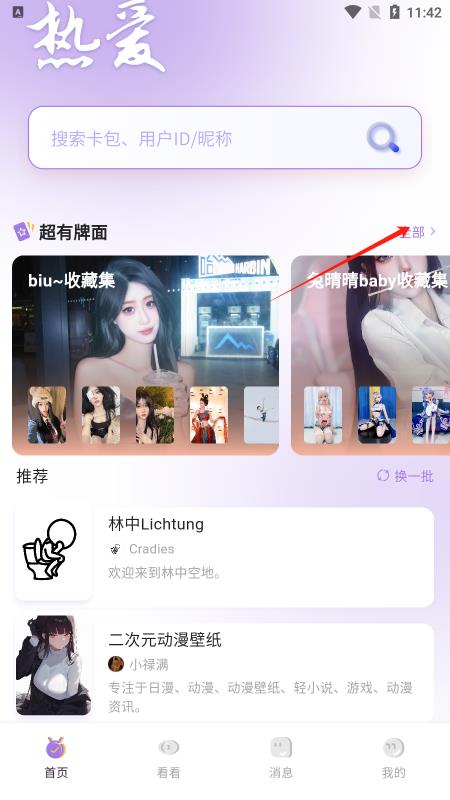 3、搜索不到的情况下,可以直接点击首页中的超有牌面,点击进去浏览各种卡包