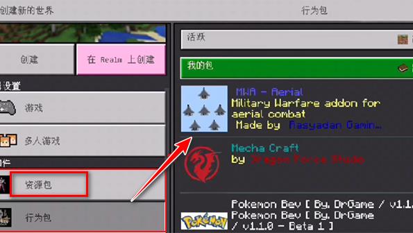 7.返回游戏创建世界,在资源包中即可选择刚才下载到的mod模组了。