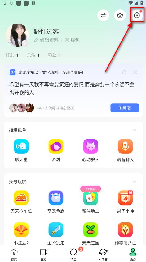 陌陌怎么设置隐身1、打开陌陌“更多”页面,点击右上角的小齿轮图标进入。