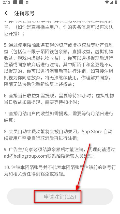 5.等待读秒后点击申请注销