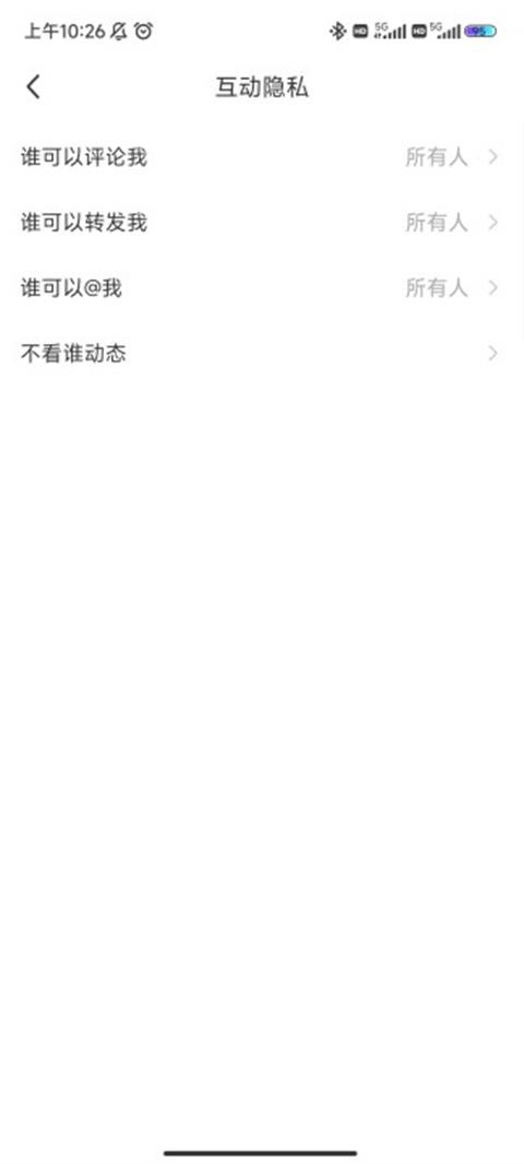 4、将“谁可以评论我”、“谁可以转发我”及“谁可以@我”都设置为“仅自己”即可将互动类信息实现隐藏。