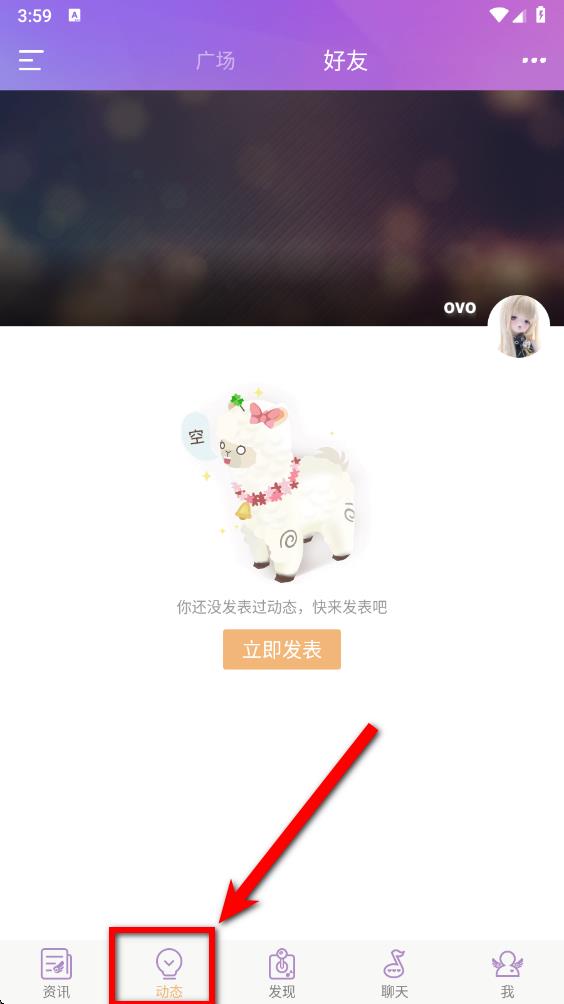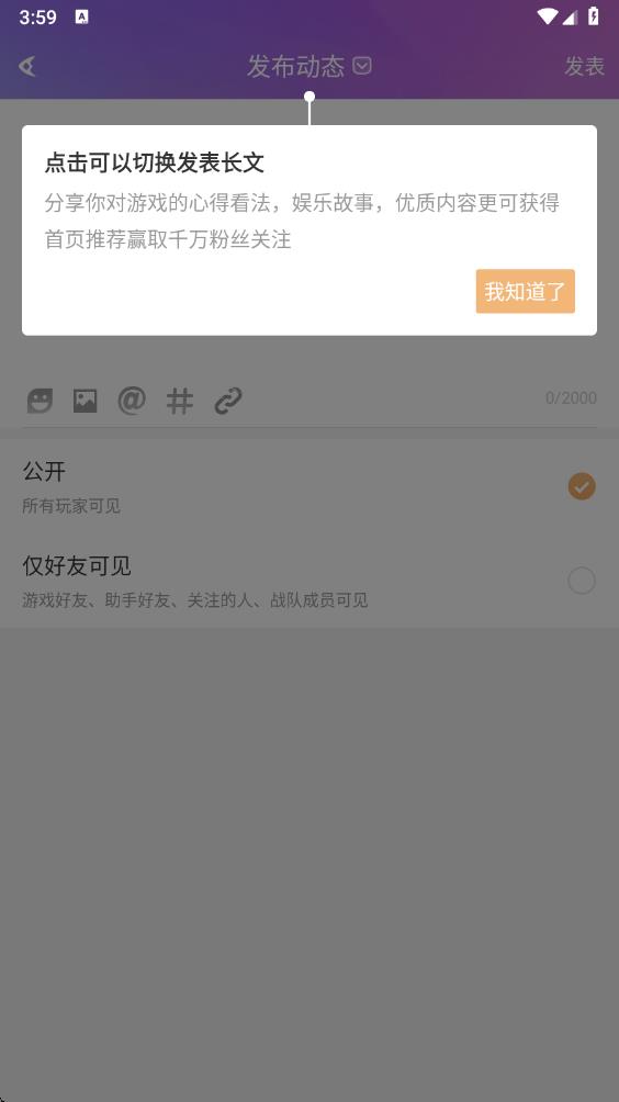 4.现在就可以发表动态了,点击还可以切换成发表长文。