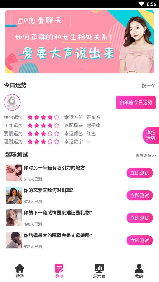 还有各种聊天小测试,让你知道自己想要寻找怎样的恋爱和怎样的人;