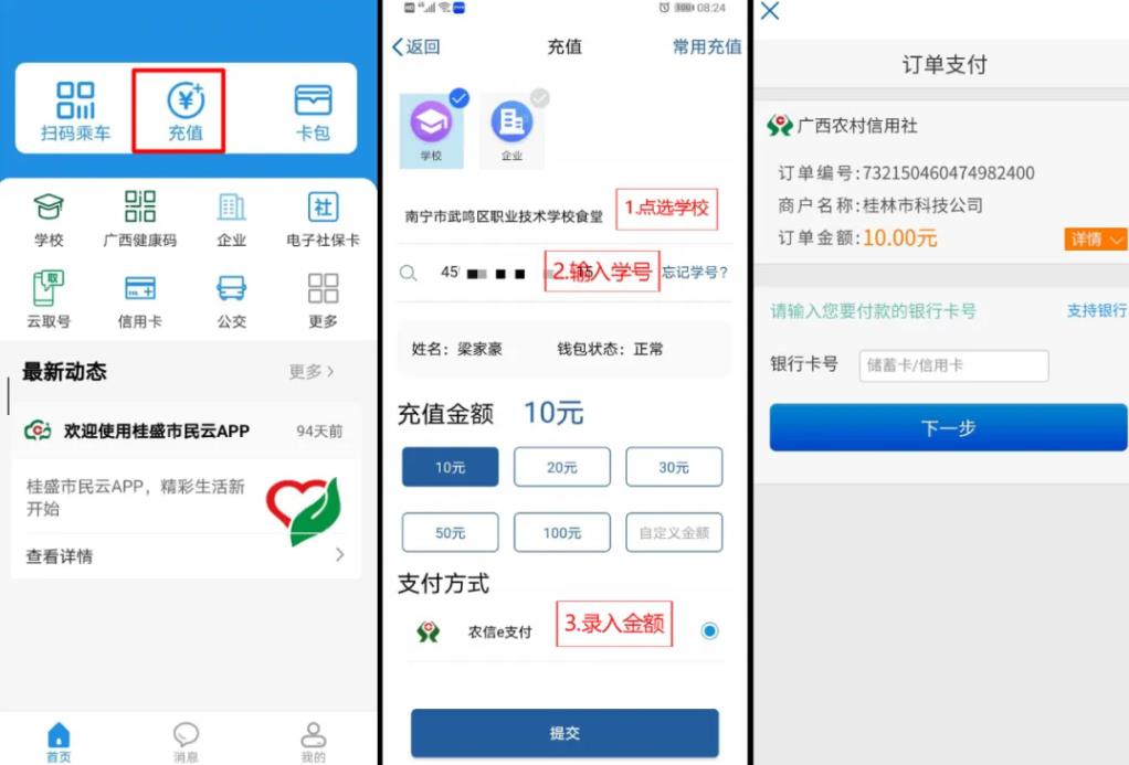 5.在首页点击充值界面根据下图步骤充值