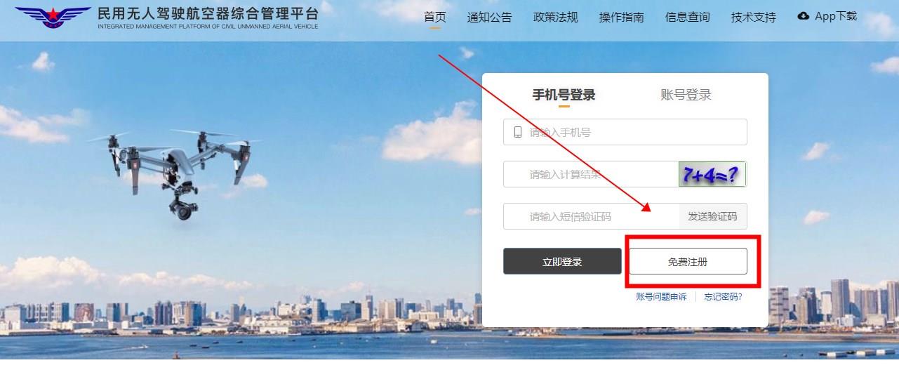 登陆uom无人机官方网址平台(https://uom.caac.gov.cn/),点击免费注册