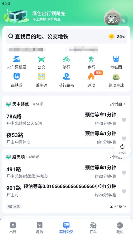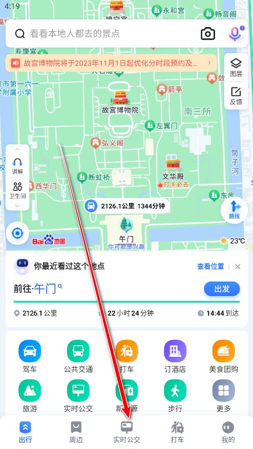 打开百度地图,点击下方的实时公交