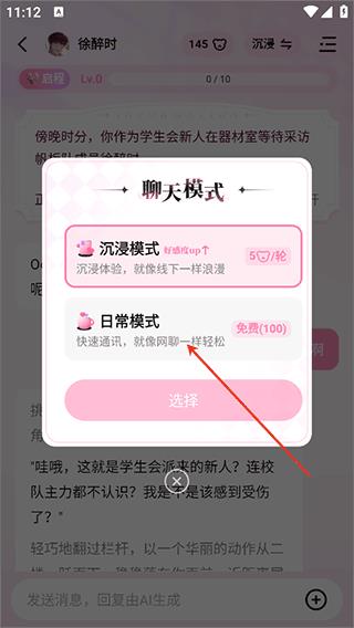 3、聊天时可以点击右上角的模式切换快速切换到想要的模式中,例如日常模式可以快速地反应