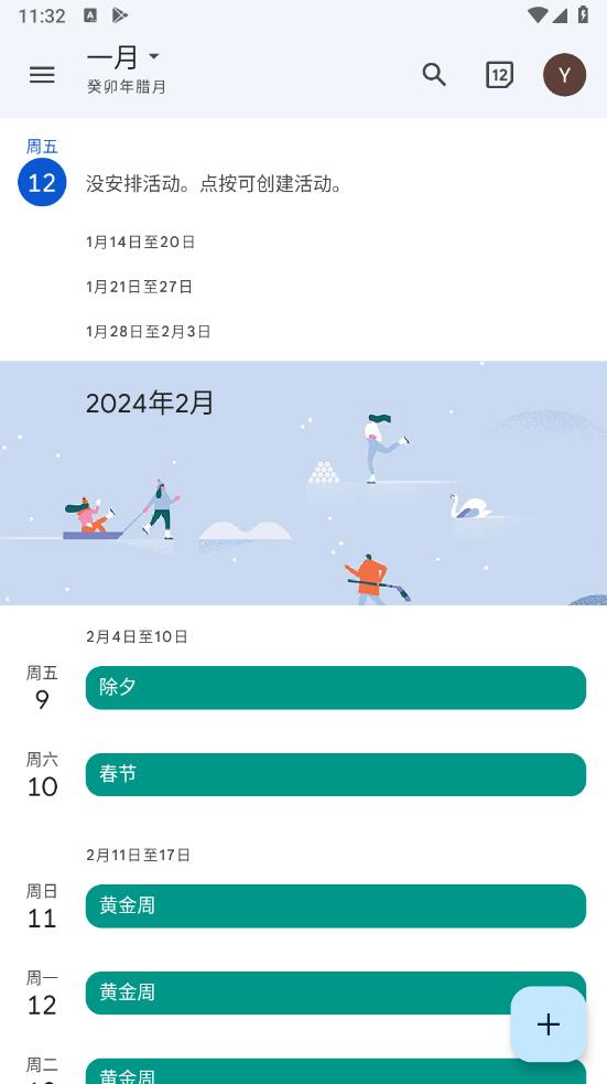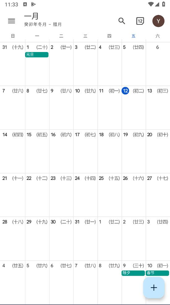 返回谷歌日历首页,此时左上角已经显示农历了