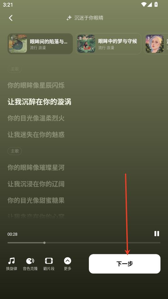 2.选择灵感关键词,点击生成音乐。
