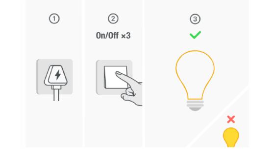 照明设备可反复开关3次。其他设备可长按复位键5秒。指示灯闪烁表示设备已进入配网模式。