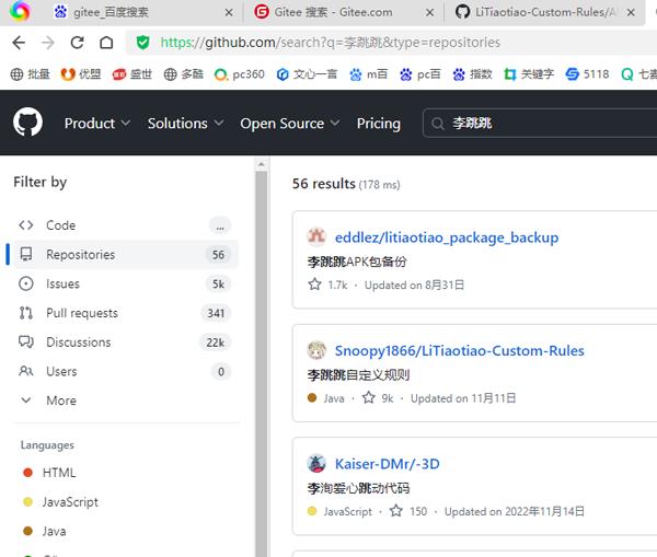 1.用户可以前往github上来获取最新代码,当然这个github网站有时候在国内是打不开的,而国内的最大的开源代码库gitee是没有存放这些规则代码的,下图就是gitee中的搜索时找到到这些规则代码,小伙伴们不用费时间在这里找了