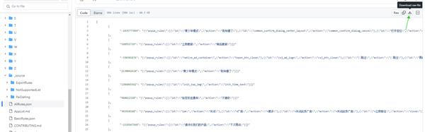 7.正如上图中所示,用户只要关心json格式文件就可以,而三个json文件格式中只需要用户关心所有规则代码文件即可。然后点击右侧的下载文件,将文件下载即可