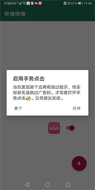 5.例如用户启用手势点击后就可以在用户看视频时自动点击视频中的【跳过】按钮