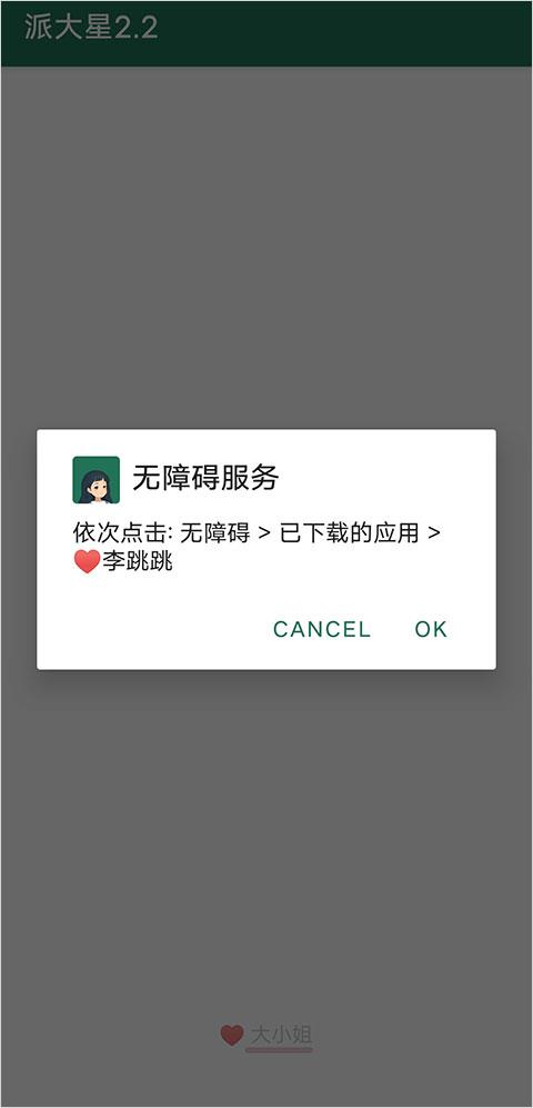 2、点击“OK”后,选择无障碍快捷方式,在“快捷方式服务”内选择“李跳跳”点击开启-确定,即可设置跳广告。
