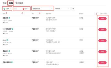 7、选择【出售】,选择【USDT】,选择【CNY】,选择【支付方式】,选择合适的买家进行出售,就完成人民币兑换。