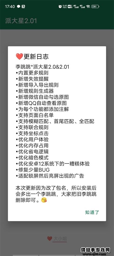 这个李跳跳派大星安卓12不闪退版之前用在安卓12上总有点问题,现在好了,一款绝对好用的app,专门为我们用户考虑。现在手机上广告满天飞,每次都有几秒的广告,让手机更清爽的方法就是启动李跳跳派大星,希望大家用得舒心!
