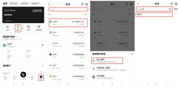 提币主要分为两种类型,一种是链上提币,一种是内部转账。此处以USDT为例为您演示操作过程。