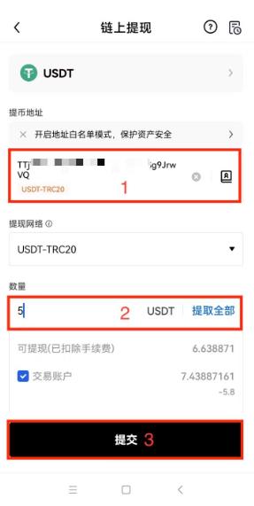第二步:输入提币信息