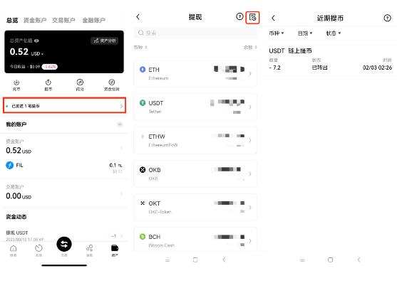 提币成功后,您可以在O易交易所的资产总览页面或者提币页面,查看相应数字资产的提币信息。