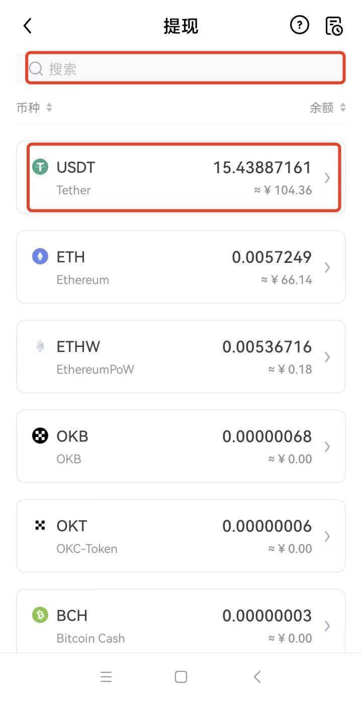 第一步:选择提币币种
