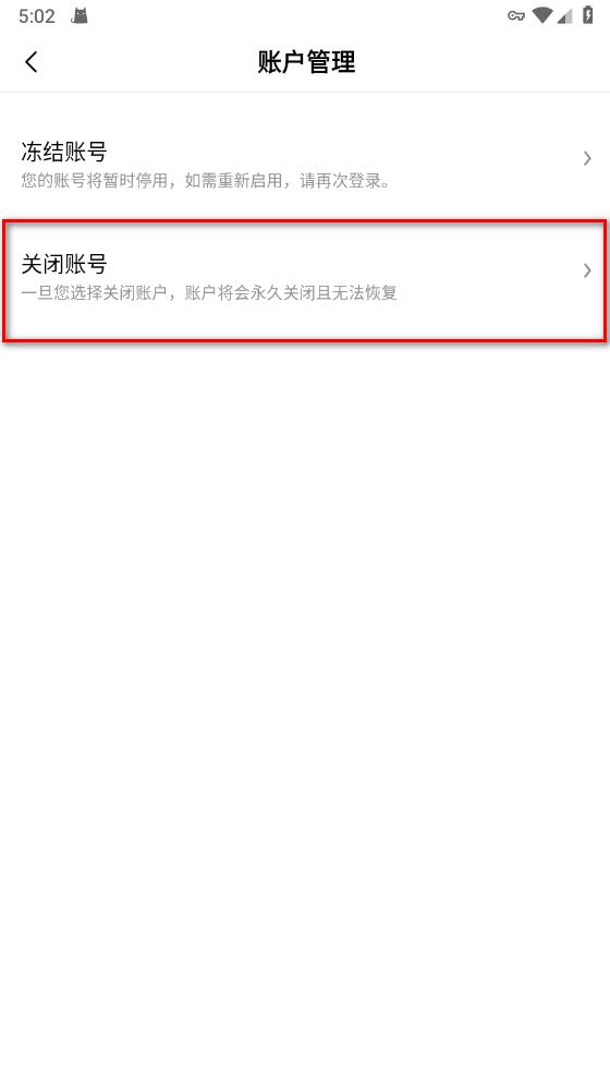 6.选择关闭账号