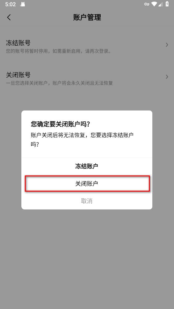 7.选择关闭账户