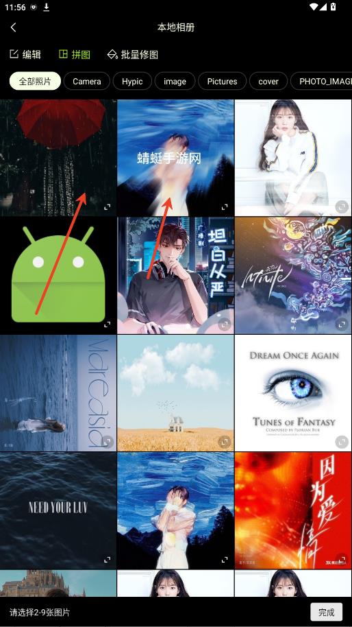 2.选择2-9张照片点击完成。