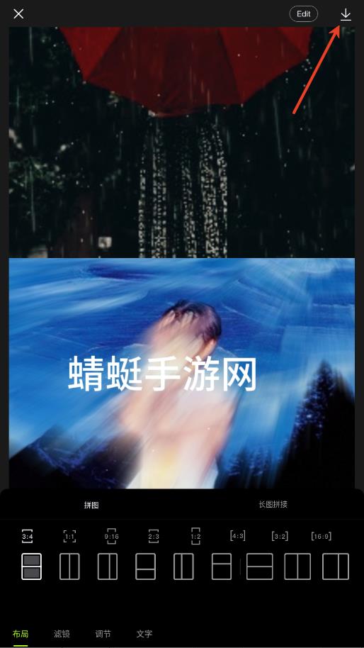 3.设置布局、滤镜等,点击下载按钮即可保存。