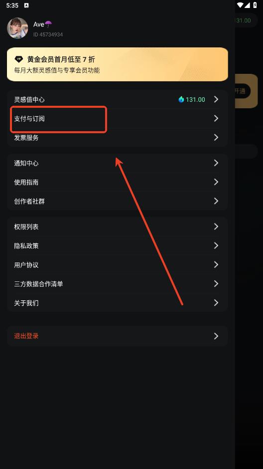 1.在菜单栏查看你的支付与订阅。
