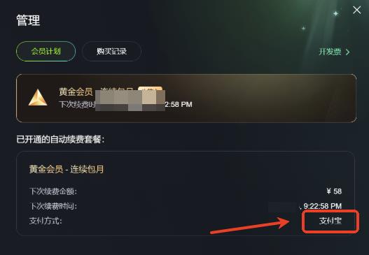 2.在会员计划中可以看见你的支付方式,微信/支付宝。