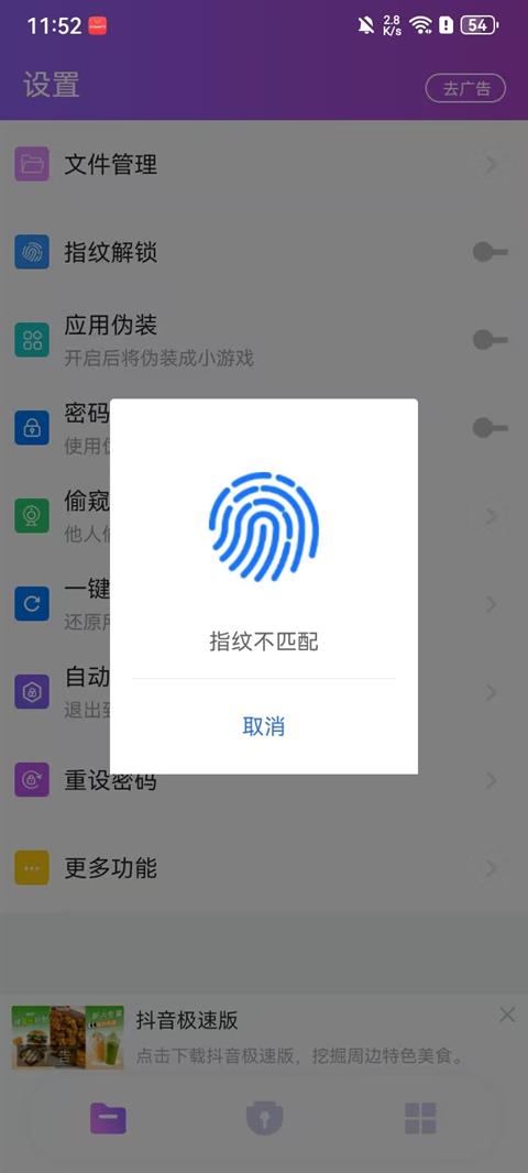 7. 指纹解锁超方便,支持安卓全部厂商和版本的指纹识别解锁。