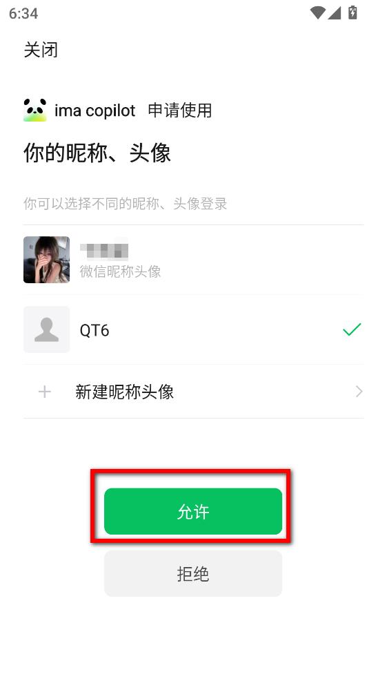 3.你可以选择不同的头像、昵称进行登录,选中即可。