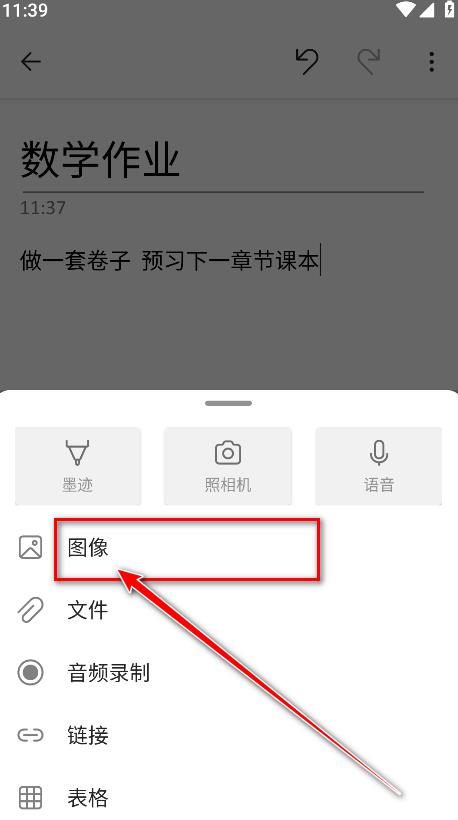 4.如下图所示,支持插入图像、文件、音频录制、链接、表格等功能,想用哪个就直接点击就好,比如小编点击图像。