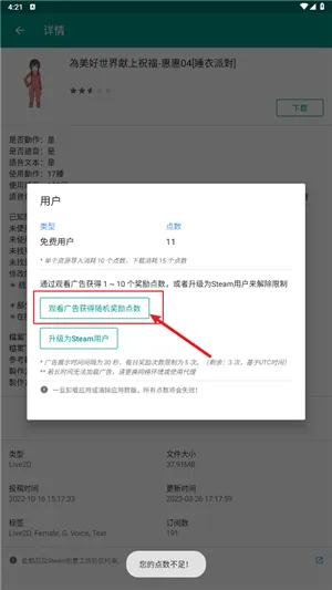 6、如果点数不足可以通过看广告获取。