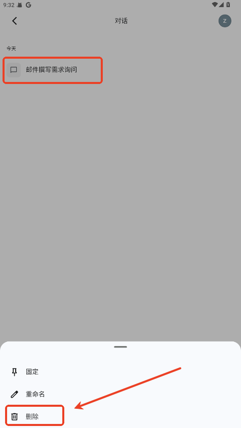 3.长按要删除的对话框,点击删除按钮即可。