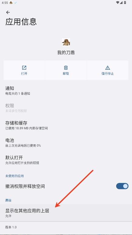 1.下载软件后,打开app,进入设置,打开允许显示在其他应用的上层权限。