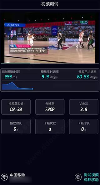 9、视频测试功能中,能选择从优酷,搜狐,腾讯以及爱奇艺播放视频,能测试出视频延迟卡顿次数等